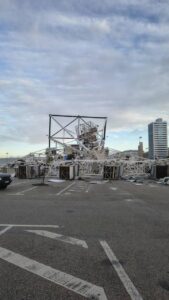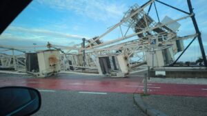 A passagem da depressão Kristin durante a madrugada desta quarta-feira, 28 de janeiro, deixou um rasto de destruição sem precedentes na Figueira da Foz. O incidente mais emblemático ocorreu no Parque das Gaivotas, onde a Roda Gigante instalada na marginal não resistiu às rajadas de vento extremas e colapsou totalmente.