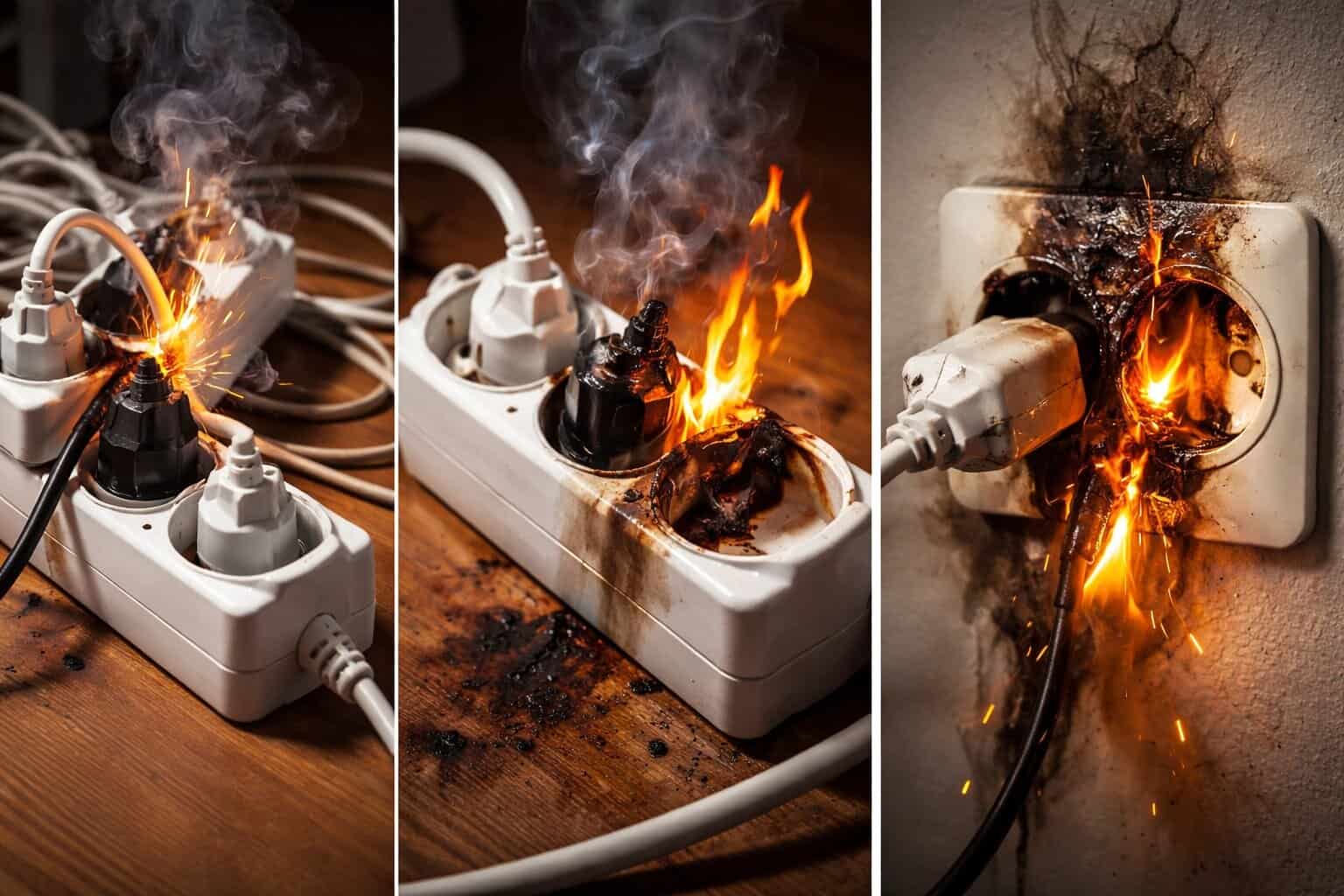 Quando o limite de potência é ultrapassado, especialmente com extensões mais antigas ou de qualidade inferior, o disjuntor do quadro elétrico pode não disparar imediatamente. Em vez disso, a extensão começa a sobreaquecer silenciosamente. Este calor excessivo pode derreter o isolamento dos cabos, causando um curto-circuito ou até mesmo um incêndio, muitas vezes sem qualquer aviso prévio, exceto pelo cheiro de plástico queimado, que geralmente surge quando o dano já é considerável. A ausência de um mecanismo de proteção imediato torna o “efeito comboio” particularmente traiçoeiro e exige uma vigilância constante e preventiva.